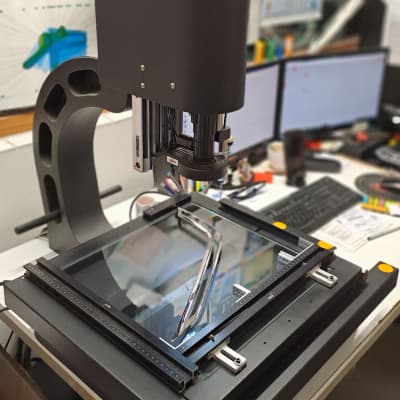 Provádíme vysoce přesné a rychlé 3D měření a porovnávání výrobků, součástek, nebo lisovacích forem s CAD modelem do velikosti 300 x 300 x 165 mm (výška x šířka x hloubka) pro automobilový, elektrotechnický a spotřební průmysl na špičkovém multisenzorovém měřícím zařízení Baty Venture 3030 3D CNC. Zařízení kombinuje výhody dotekového měření sondou a výhody bezkontaktního měření zajišťovaného barevnou kamerou s vysokým rozlišením. Neocenitelnou vlastnosti je CNC režim. V tomto režimu si zařízení díl uloží a poté stačí pouze vyměnit další stejný díl a stroj sám provede proměření bez nutnosti dalších operací. Měřící práce provádí zkušený operátor.